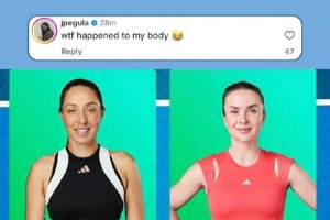 不過據博主“克母雞”消息,本場比賽賽前出現了一則趣事,WTA在發布決賽海報時不小心把佩古拉衣服的白邊P掉,導致佩古拉的身材看上去十分面條,看上去有些詭異…