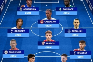 中場(chǎng):普拉多斯(畢爾巴鄂競(jìng)技)、奧多貝爾(熱刺)、格拉利什(埃弗頓)、卡瓦略(布倫特福德)