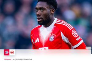 體育資訊02月22日訊 拜仁官方通報了阿方索·戴維斯的傷情,他在本輪拜仁3-2法蘭克福的比賽中因傷退場。