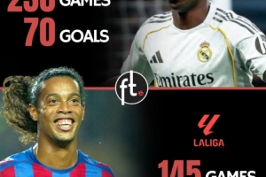 維尼修斯在西甲中已經(jīng)打進(jìn)70球,追平了同胞羅納爾迪尼奧的進(jìn)球數(shù)量。但是,巴薩傳奇要比他少用85場(chǎng)比賽。