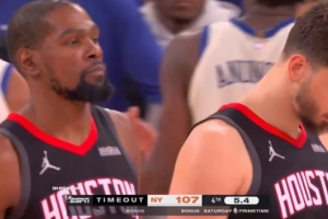 GIF-火箭最后落后4分,杜蘭特神情無奈
