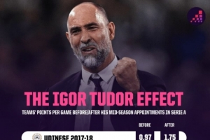 據統計,圖多爾此前在意甲5次中途接手球隊后,戰績均有所提升,具體情況如下(場均積分變化):