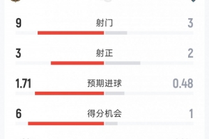 預期進球:1.71-0.48