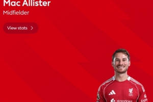 本場比賽麥卡利斯特在補時階段貢獻讀秒絕殺,賽后他也當選英超官方球迷票選全場最佳球員。