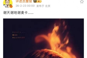 賽后知名解說詹俊在社媒評論道:“謝天謝地謝麥卡…”。