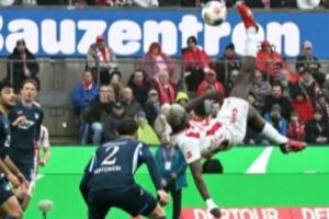 比賽開場15分鐘,科隆前鋒阿赫接到馬拉的傳中,在禁區內上演了一記非常精彩的倒掛金鉤破門,凌空的動作非常舒展!