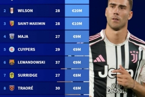 體育資訊2月23日訊 德轉列今夏合同到期十大前鋒球員身價,弗拉霍維奇3500萬歐居首。