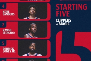 賽前,快船公布首發:鄧恩、桑德斯、小卡、瓊斯、大洛。