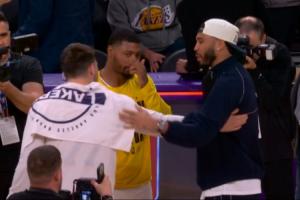 GIF-東契奇和綠軍眾將擁抱一下 還和塔圖姆聊了聊