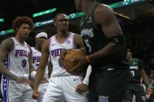 談到馬克西今天隔扣了他,愛德華茲表示:“他是聯(lián)盟里我最喜歡的球員之一。他今天還隔扣了我,這讓我不太爽。”