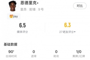 體育資訊2月23日訊 在北京時間今天凌晨結束的法甲比賽,里昂客場1-3不敵斯特拉斯堡,被皇馬外租至里昂的恩德里克本場比賽表現(xiàn)不佳,最終僅獲得了6.5分的評分。