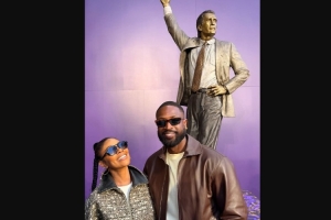 韋德也出席了此次活動,韋德還更新微博,曬出了與雕像的合影,并配文寫道:“能在你手下打球是一種榮幸,萊利!恭喜你成為湖人隊第一個豎立雕像的教練!(It's an honor to play under your leadership, Pat!)”