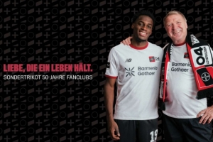 體育資訊2月24日訊 勒沃庫森近期推出了一款極具情懷的白色特別版球衣,旨在慶祝其首個球迷會成立50周年。