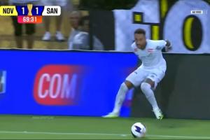 下半場第70分鐘,桑托斯后場長傳發動反擊,34歲的內馬爾奮起直追,結果仍然無法阻止球出邊線,甚至還險些踉蹌摔倒。