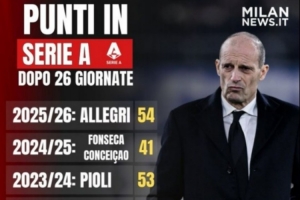 25/26賽季,阿萊格里執(zhí)教,54分
