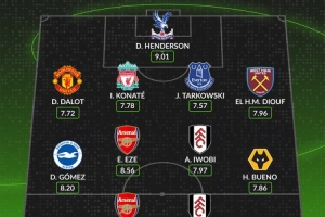 中場:迭戈·戈麥斯(布萊頓)、埃澤(阿森納)、伊沃比(富勒姆)、布埃諾(狼隊)