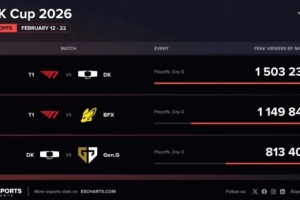體育資訊2月24日訊 外媒統(tǒng)計(jì)2026LCK杯海外峰值: