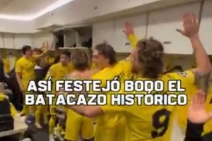 博德閃耀教練和球員賽后在更衣室慶祝晉級,他們拍打桌子和更衣柜,以特有的方式慶祝,更衣室內氣氛熱烈。