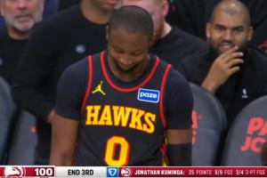 此役,庫明加老鷹生涯首秀,他出戰(zhàn)24分27秒,投籃12中9,三分4中3,罰球7中6,得到27分7籃板4助攻2搶斷。