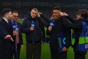 體育資訊2月25日訊 《太陽報》報道,曼城舊將理查茲在演播室向巴西傳奇前鋒羅納爾多表達仰慕,但大羅因為耳機問題沒聽到。