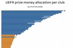 體育資訊02月25日訊 專業數據媒體Football Meets Data統計了目前三級歐戰獎金情況,其中拜仁9980萬歐最多,歐聯杯最多的羅馬僅比歐冠最少的阿拉木圖凱拉特多90萬歐。