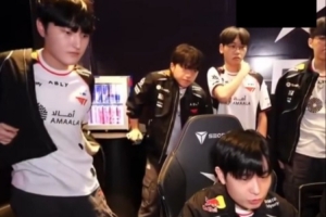 從轉(zhuǎn)播鏡頭可以看到,Keria站著有一點吃力,需要用手撐著桌子。