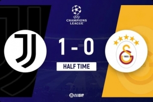 上半場傷停補時4分鐘,半場結束,尤文圖斯暫1-0加拉塔薩雷。