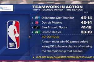 40-20奪冠定律:一支球隊必須在輸掉20場比賽前贏得40場勝利,才有可能贏得當賽季總冠軍。