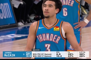 雷霆客場(chǎng)挑戰(zhàn)活塞,轉(zhuǎn)播方曬出麥凱恩本賽季交易前后的數(shù)據(jù)對(duì)比,得分,投籃命中率和三分命中率均明顯提升。