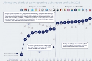 此外,進入盈利榜前十的還有波爾圖4400萬歐元,拜仁4300萬歐元,本菲卡3700萬歐元,費耶諾德3100萬歐元,以及布魯日2600萬歐元。
