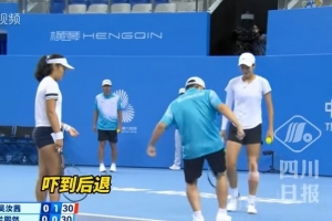 體育資訊11月13日訊 全運會網球青年組女團半決賽,賽場出現了不速之客。
