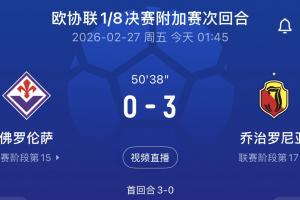 體育資訊02月27日訊 歐協(xié)聯(lián)1/8決賽附加賽次回合,佛羅倫薩對陣喬治羅尼亞。