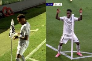 歐冠1/8決賽附加賽,皇馬兩回合3-1雙殺本菲卡,維尼修斯兩回合各入一球,兩次都在角旗桿旁跳舞慶祝。