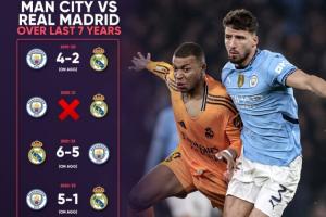 皇馬與曼城再歐冠共有過交手15場,其中有12場是在淘汰賽中,淘汰賽皇馬4次晉級,曼城2次。小組賽3場交手兩隊各1勝1平1負。
