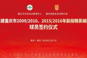 為深入貫徹落實體育強國戰(zhàn)略,完善重慶足球青訓體系,夯實本土足球人才根基,推動重慶足球事業(yè)高質量發(fā)展,2026年2月27日下午14:30,重慶市足球運動管理中心與重慶銅梁龍足球俱樂部有限公司共建重慶市2009/2010、2015/2016年齡段精英梯隊球員簽約儀式,在重慶銅梁龍足球俱樂部辦公樓一樓會議室順利舉行。此次簽約不僅是政企協(xié)同深耕青訓的重要實踐,更是重慶立足長遠、布局未來,以青訓賦能城市體育發(fā)展、培育本土足球力量的關鍵舉措,為山城足球事業(yè)的薪火相傳奏響新樂章。