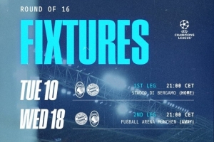 體育資訊2月27日訊 歐冠1/8決賽,亞特蘭大對陣拜仁,兩回合比賽時間已經確定。