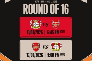 體育資訊2月27日訊 歐冠1/8決賽,阿森納對陣勒沃庫森,兩回合比賽時間已經確定。