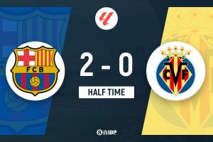 上半場補時3分鐘,巴薩2-0比利亞雷亞爾。