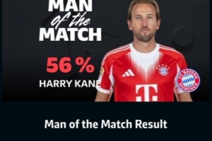 體育資訊3月1日訊 拜仁在本輪德甲3-2擊敗多特,凱恩以56%的票數當選全場最佳。