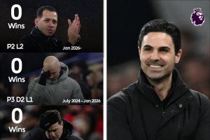 據英超官方統計,切爾西近5任主教練,均未能對阿森納取得勝利,這期間阿森納的主教練一直是阿爾特塔。