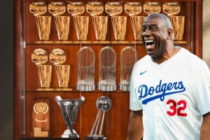 魔術師曾在1979年率隊拿下NCAA冠軍,他作為NBA球員生涯拿下5冠、作為湖人小老板拿下5冠、作為WNBA球隊洛杉磯火花小老板拿下1冠、作為MLS(美國足球大聯盟)球隊洛杉磯FC小老板拿下1冠、作為道奇老板已經拿下3冠。