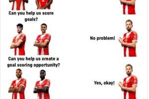 凱恩本賽季已經為拜仁各項賽事貢獻45球5助攻,其中德甲打進30球。拜仁官推也曬照玩梗,面對隊友提出的“為我們進球”、“為我們創造進球機會”、“幫助后衛防守”、“幫助球隊取得領先”等諸多要求,凱恩全部予以肯定回答。