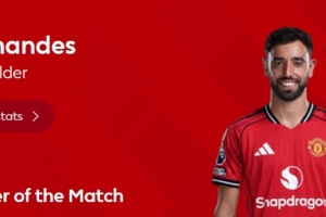 本場(chǎng)比賽B費(fèi)首發(fā)出場(chǎng),貢獻(xiàn)1球1助攻,賽后他也當(dāng)選英超官方球迷票選全場(chǎng)最佳球員。