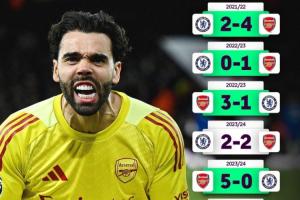 自2022年以來,5年時間,切爾西面對阿森納1勝難求:22年2負(fù)、23年1平1負(fù)、24年1平1負(fù)、25年1平1負(fù)、26年3負(fù)。