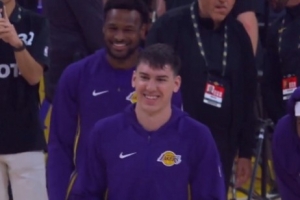GIF-八村代替詹姆斯執行賽前儀式,多次嘗試沒成功,隊友笑嘻了~