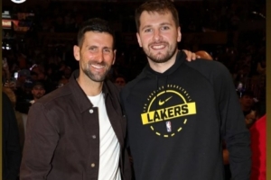 本場網壇巨星德約科維奇現場觀戰并與東契奇合影,NBA官方曬出了兩人合影。賽后東契奇在INS上轉發并寫道:“??????”