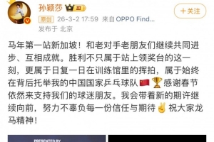 馬年第一站新加坡!和老對手老朋友們繼續共同進步、互相成就。勝利不只屬于站上領獎臺的這一刻,更屬于日復一日在訓練館里的揮拍,屬于始終在背后托舉我的中國國家乒乓球隊。