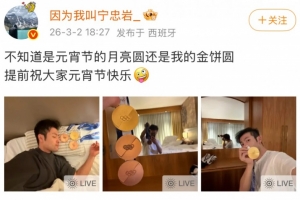 寧忠巖在社媒配文寫道:“不知道是元宵節的月亮圓還是我的金餅圓。提前祝大家元宵節快樂!”