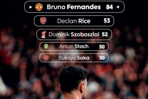 體育資訊3月2日訊 英超官方曬本賽季聯賽球員創造機會次數榜,B費84次遙遙領先,第二賴斯53次。