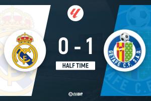 上半場補時6分鐘。半場戰罷,皇馬0-1赫塔費。